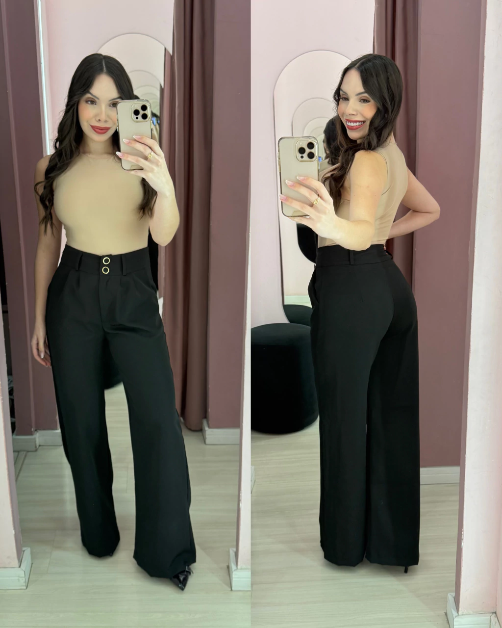 DETALHES DO PRODUTO: Apresentamos a Calça pantalona alfaiataria Jaque, uma peça indispensável no seu guarda-roupa! Com um design sofisticado, esta calça é ideal para diversas ocasiões, desde o trabalho até eventos sociais. O fechamento de 2 botões e zíper garante um ajuste perfeito e elegante.