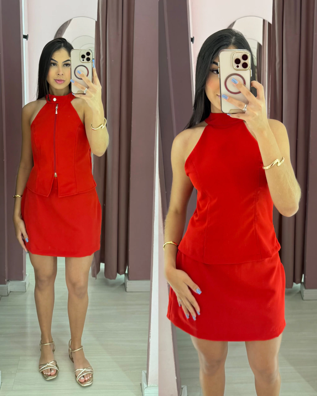 Feito em alfaiataria premium, ele é composto por regata com zíper nas costas e shorts saia que garante conforto e elegância 😍