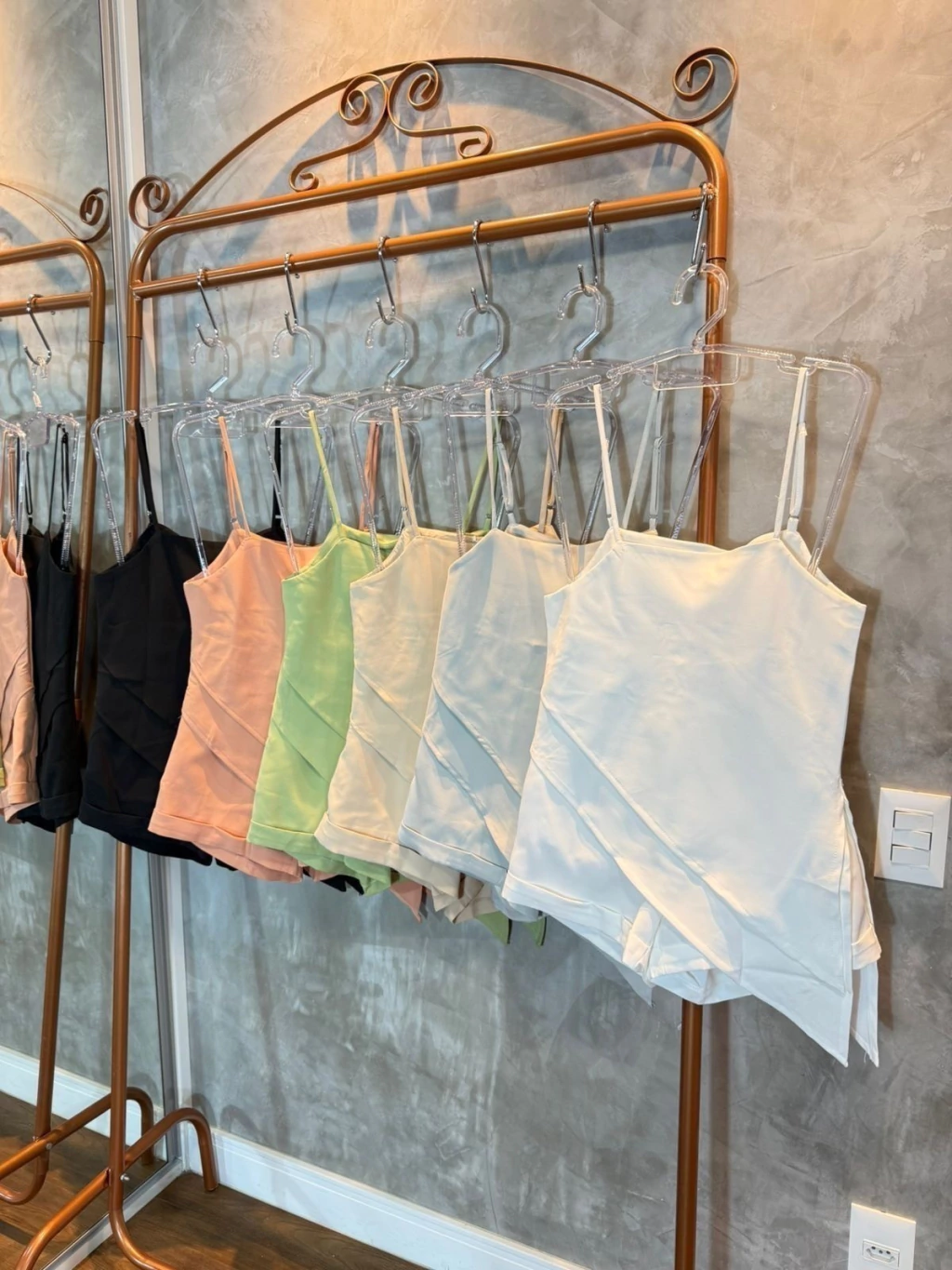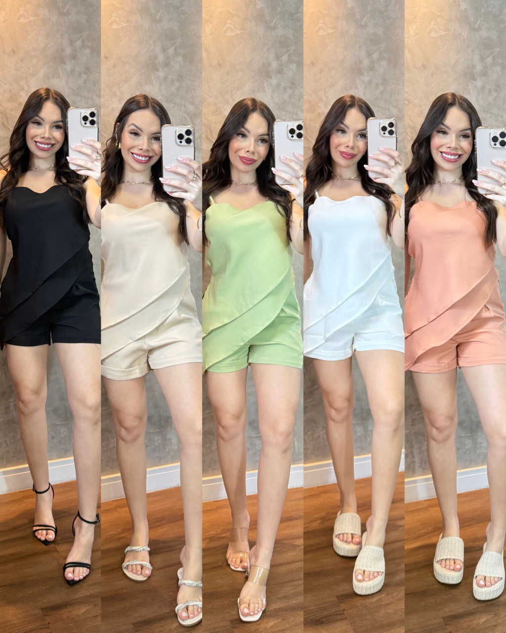 Conjunto alfaiataria composto pela regata com alça regulável e shorts com fechamento em zíper e botão, bolso lateral. Sté usou P