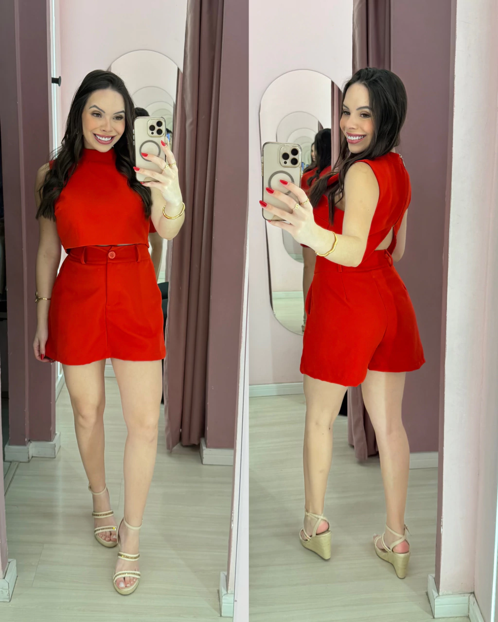 Composto por regata com fechamento em zíper nas costas e shorts saia, que une conforto e sofisticação 😍