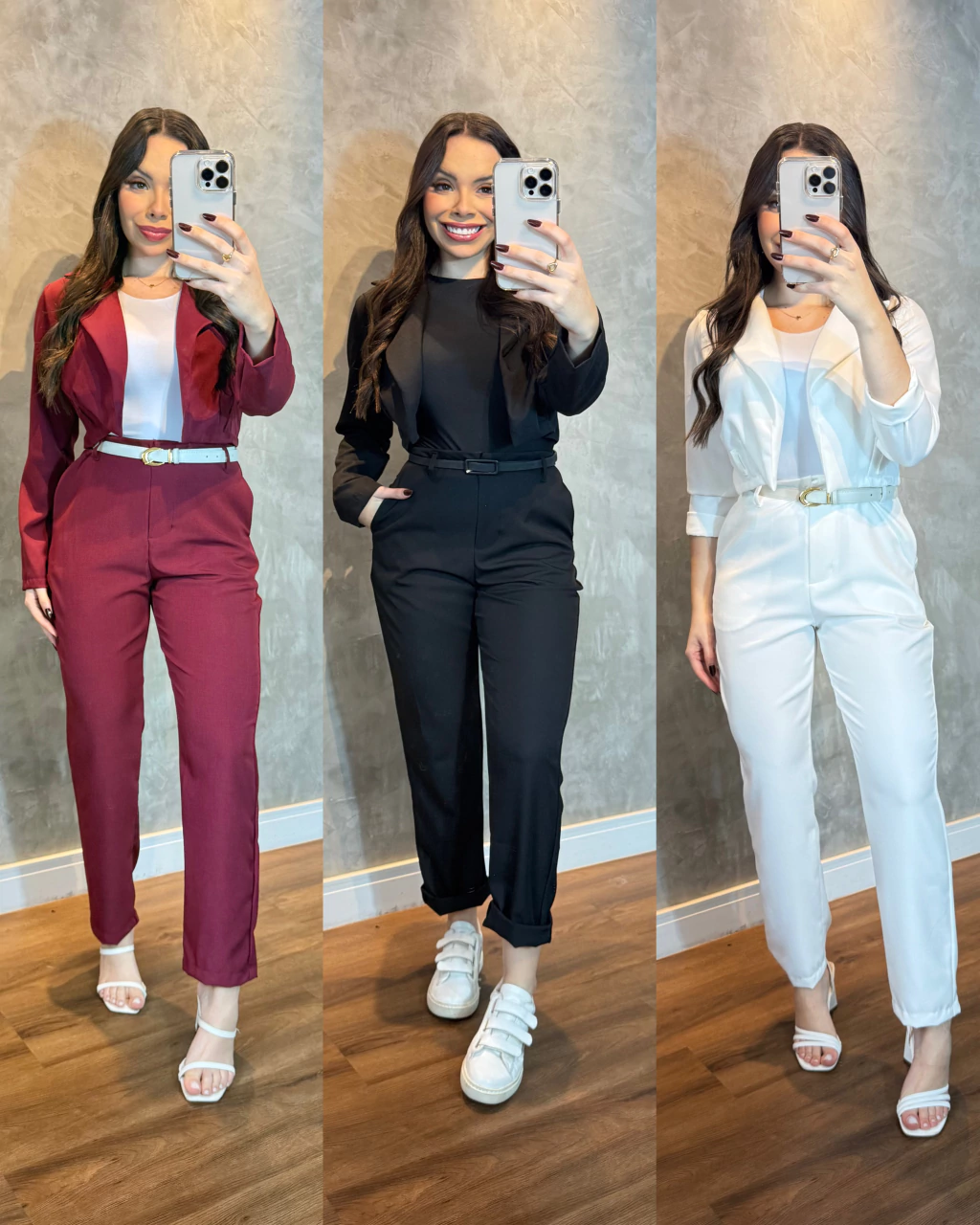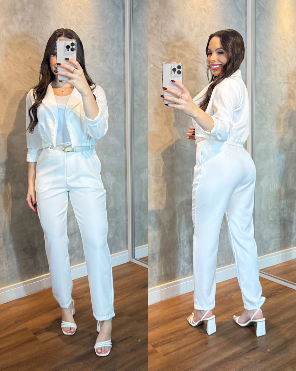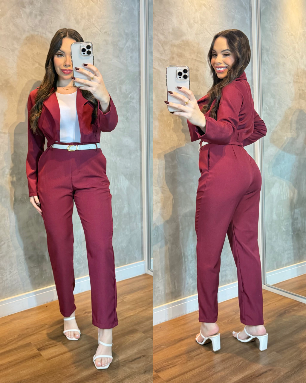 Conjunto alfaiataria Silvia composto pela calça estilo cenoura com fechamento em zíper e colete, modelo usou P