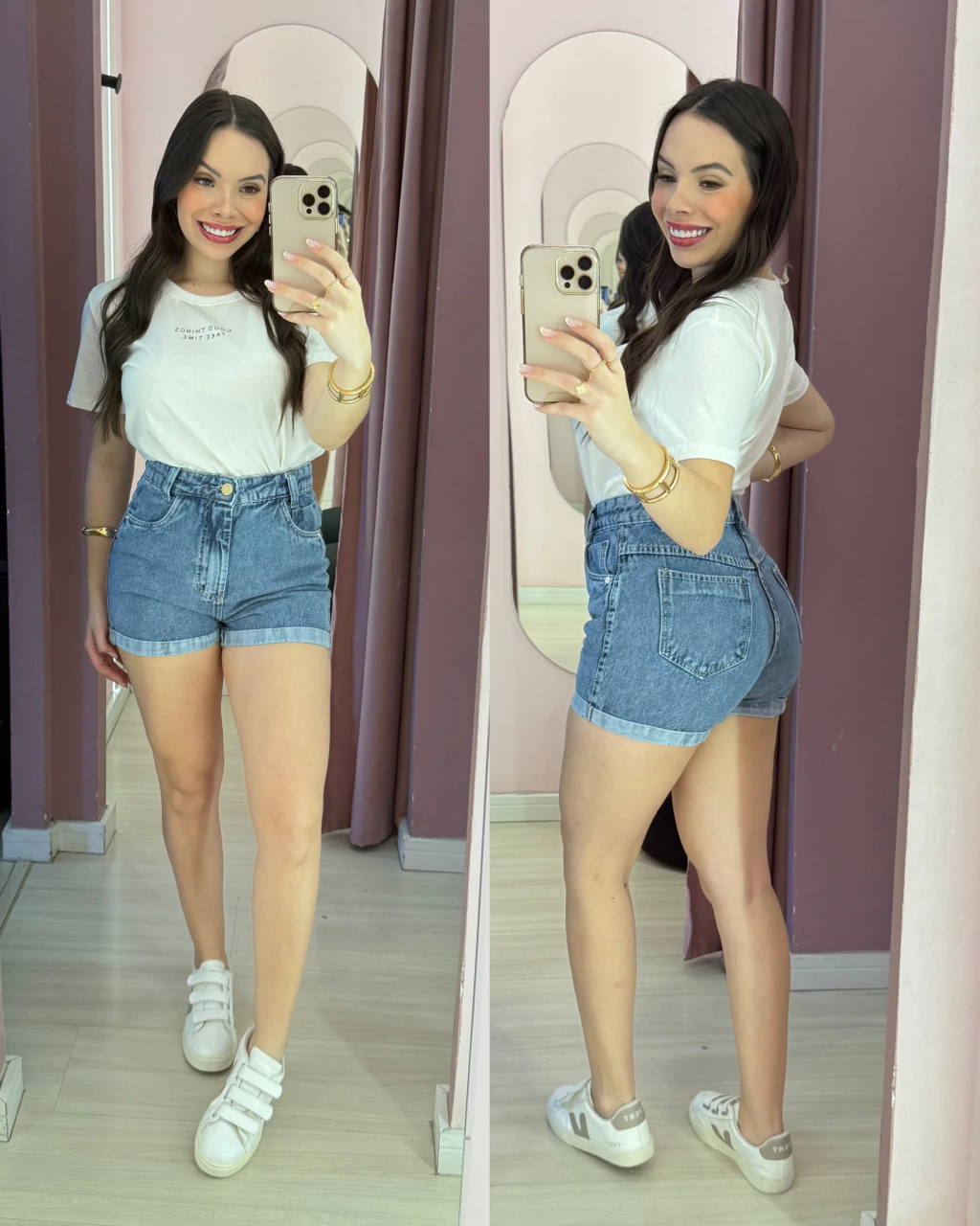 Shorts jeans sem elastano, modelo usou tamanho 38