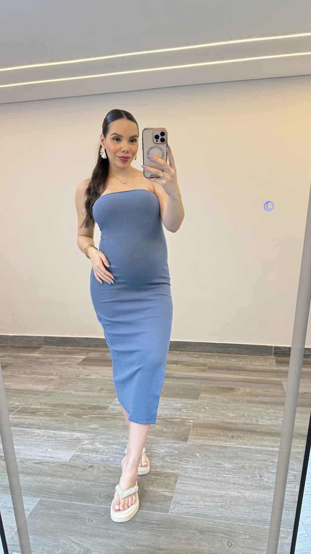 Vestido Mia tomara que caia ribana canelado AZUL JEANS